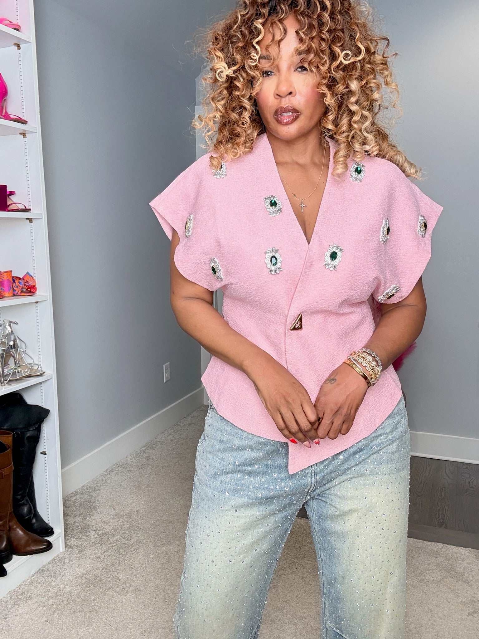 Elevate your wardrobe with the Stunning Emerald top, crafted to deliver both style and sophistication. This top features a rich emerald hue that adds a refined touch to any outfit, while its expertly tailored fit ensures a sharp silhouette. Ideal for formal occasions or stylish everyday wear, this piece combines vibrant color and quality construction to enhance your look with confidence and elegance.